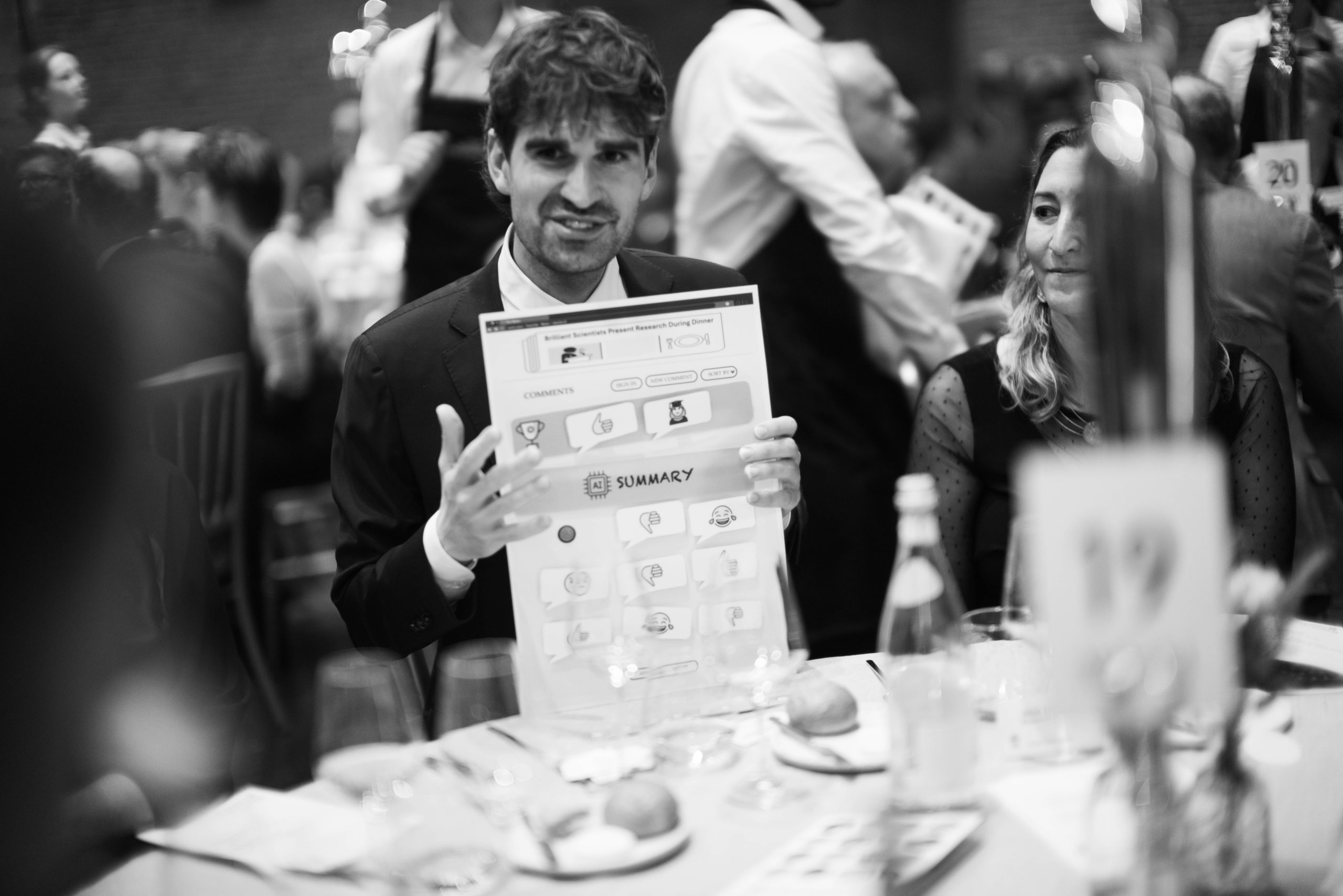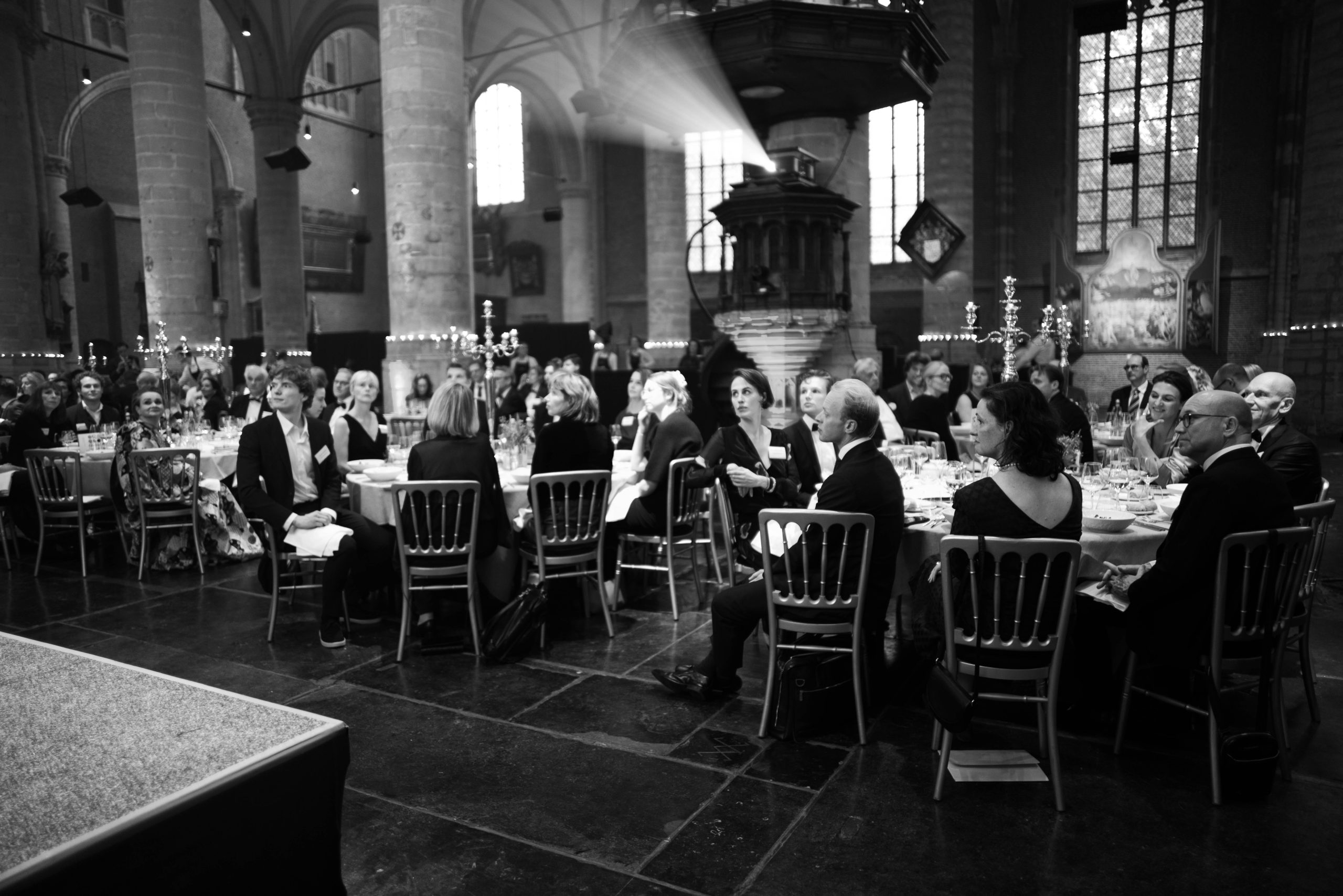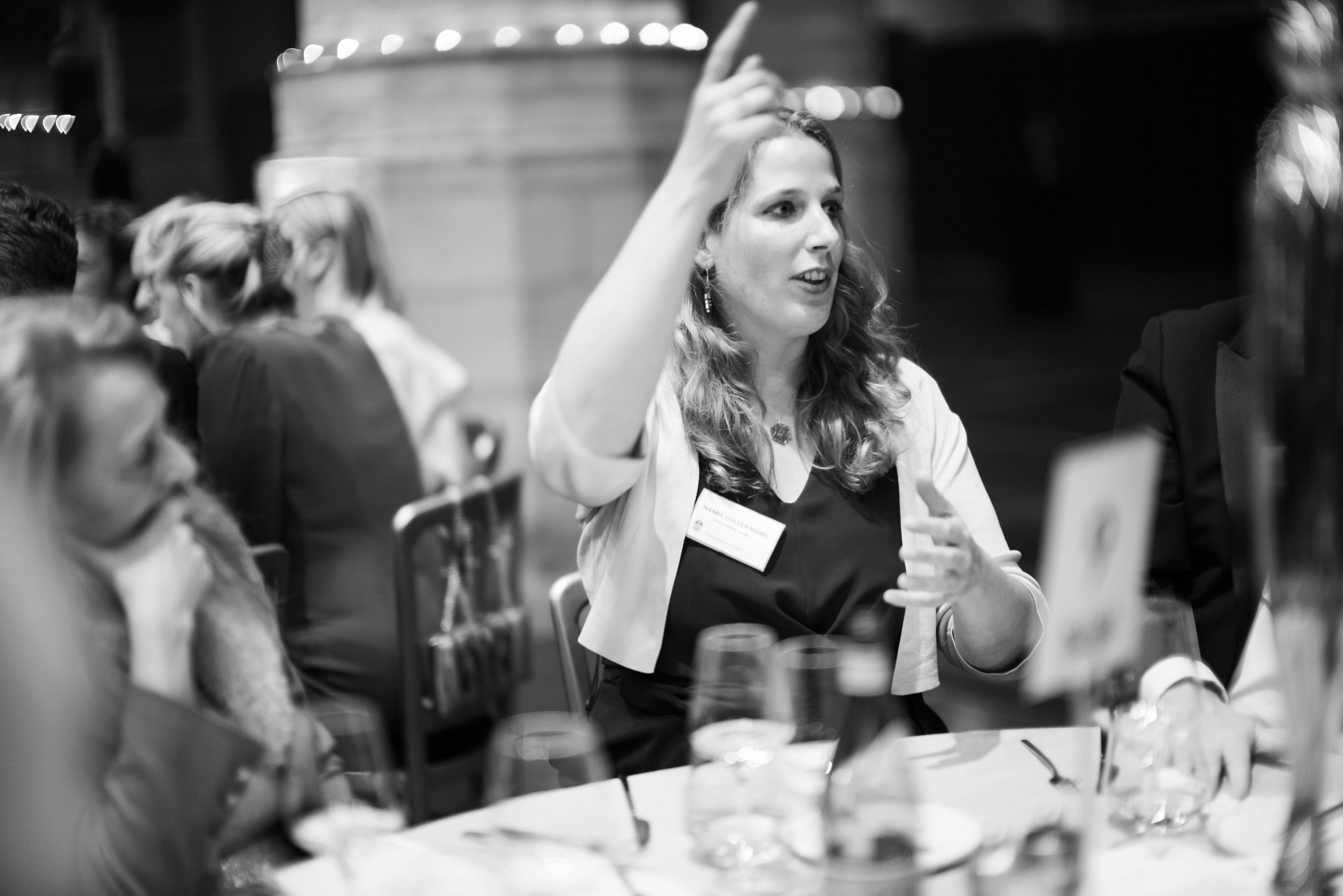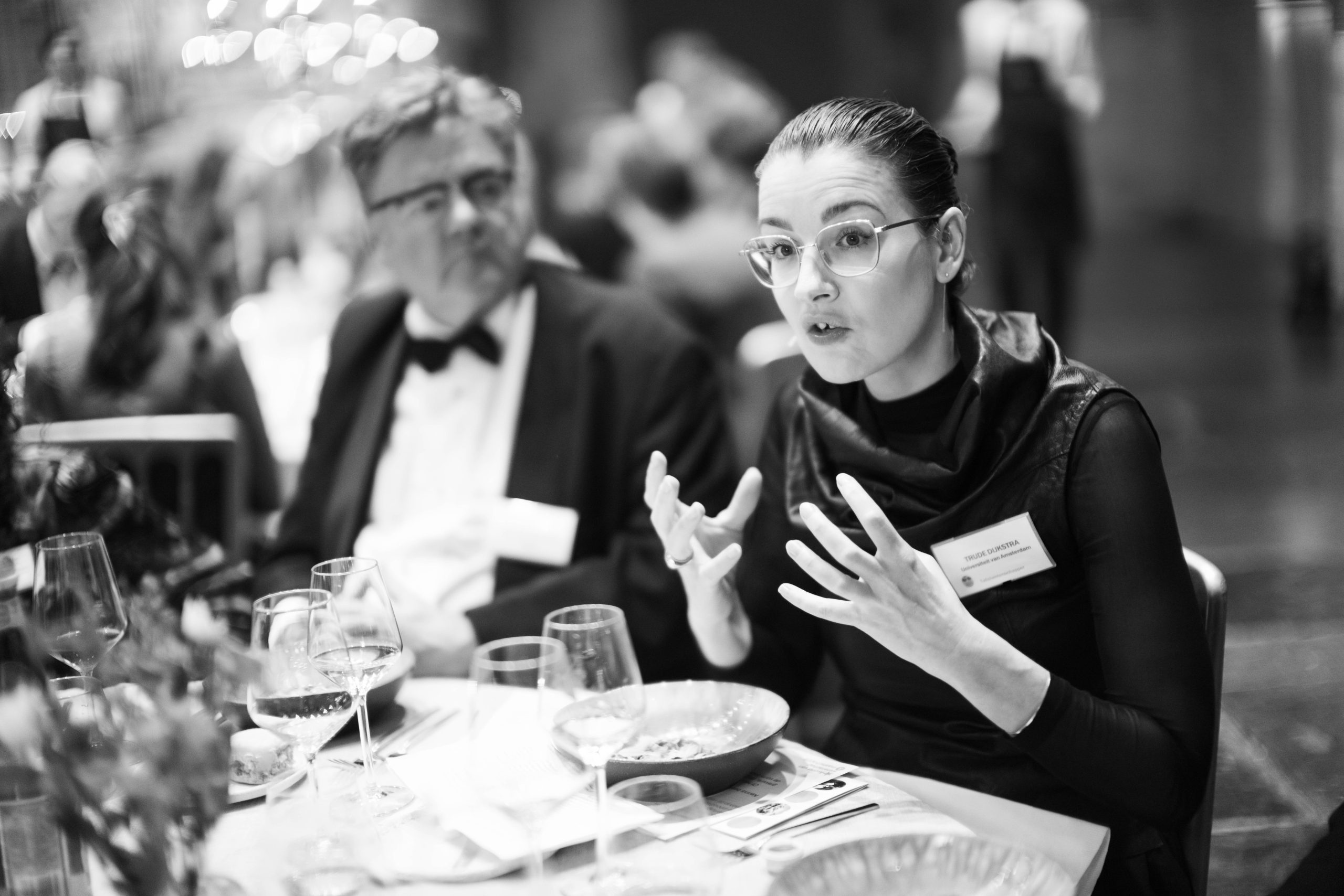 Als altijd was ook deze avond weer een essentiële rol weggelegd voor 25 koppels van topwetenschappers en hun talentvolle onderzoekers, die tijdens het diner aan de 25 tafels prikkelende stellingen en vragen presenteerden waarover de disgenoten vervolgens met elkaar in gesprek gingen. De koppels wisselden een keer van tafel, zodat alle genodigden twee totaal verschillende stellingen voorgelegd kregen om met elkaar over van gedachten te wisselen. Hier kunt u het programmaboekje 2024 nalezen met de namen en stellingen.